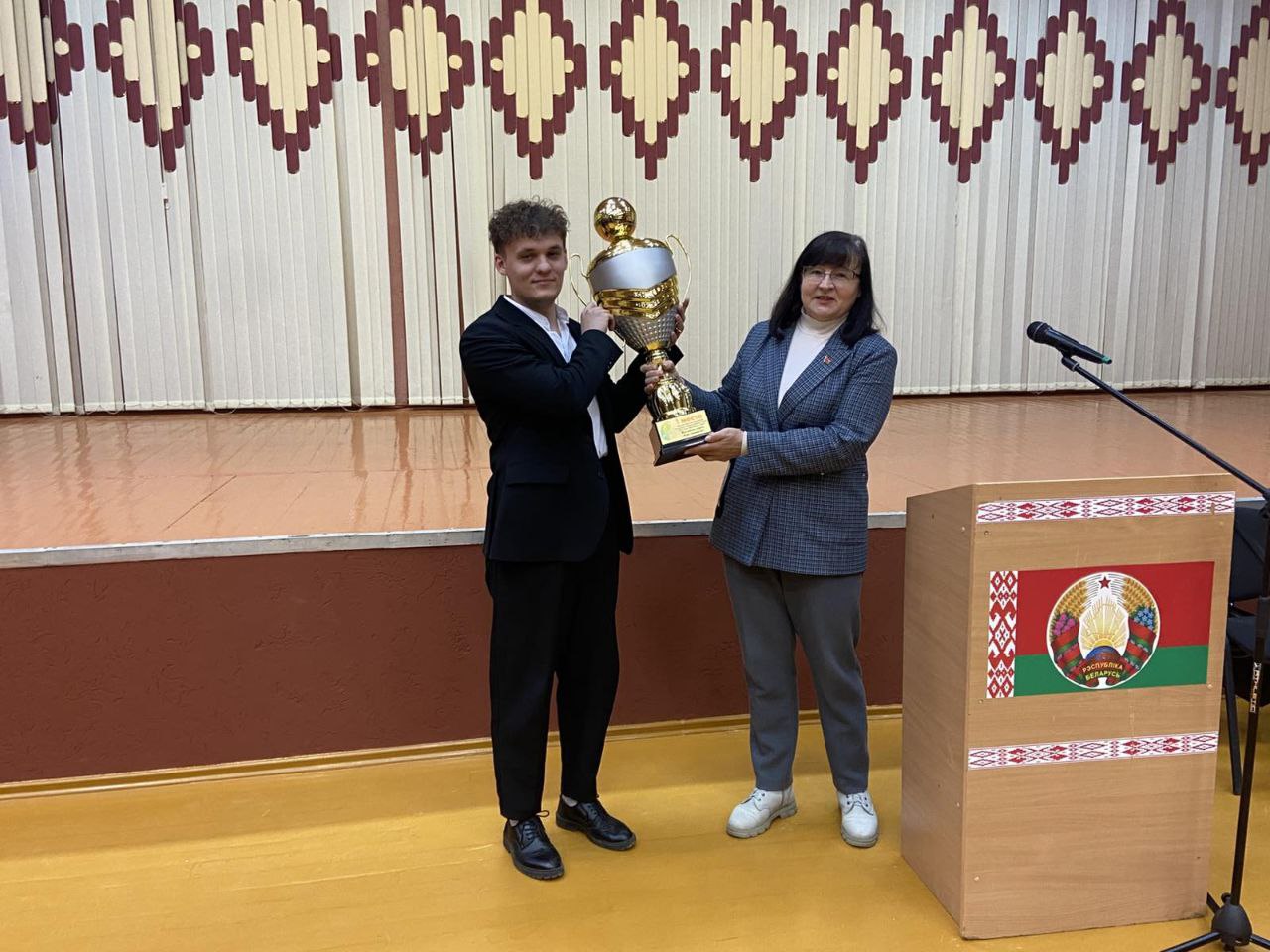 Кубок был вручён учителю истории, члену сборной команды района по мини-футболу Кононовичу Алексею Анатольевичу.