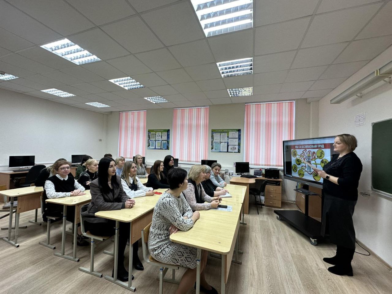 Председатель первичной профсоюзной организации школы провела занятие в рамках акции. Главная задача профактива – напомнить каждому сотруднику о необходимости неукоснительного соблюдения правил охраны труда, ведь от этого зависит благополучие всех, кто находится в стенах учебного заведения.