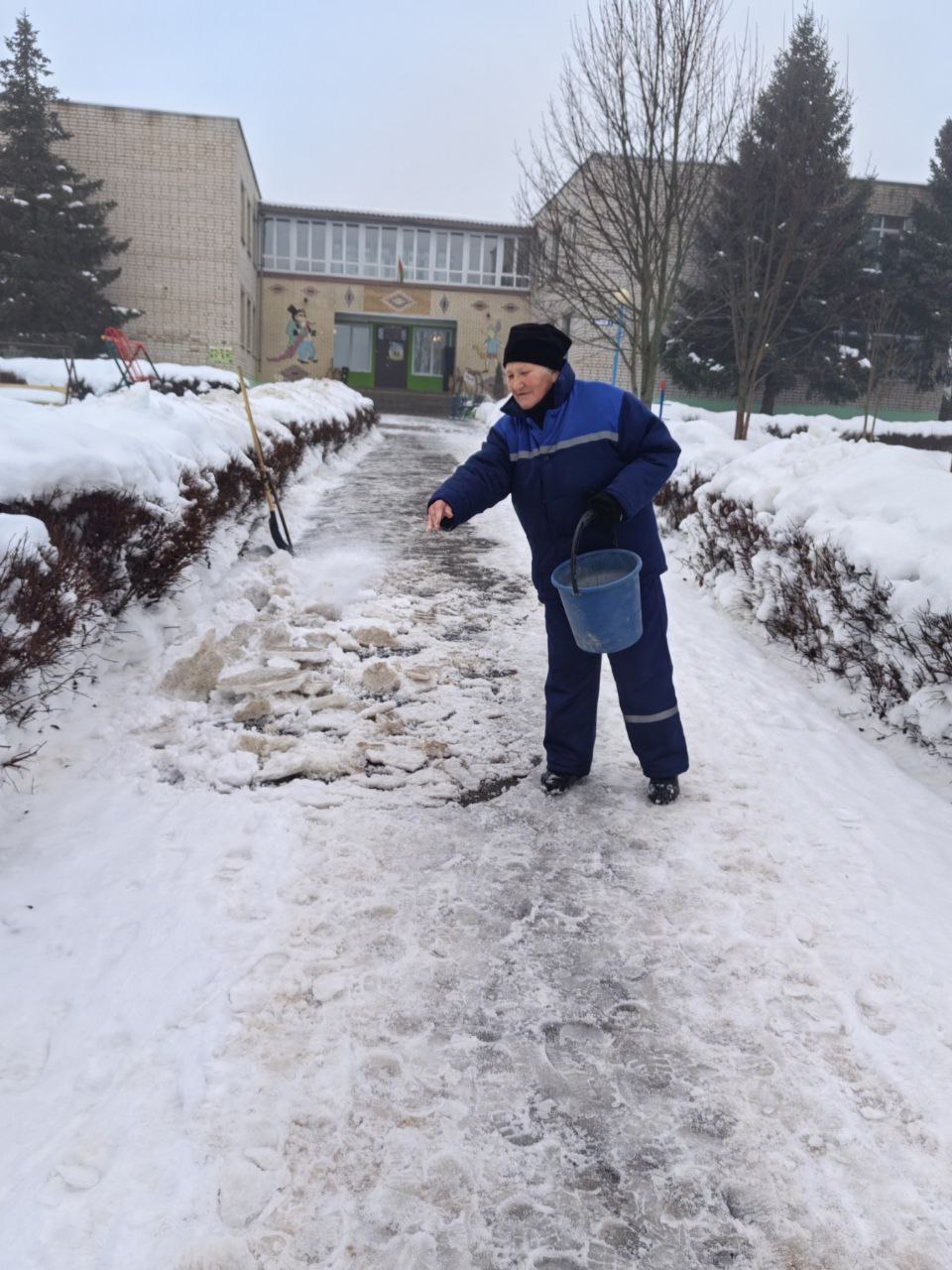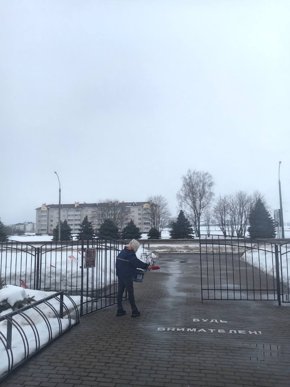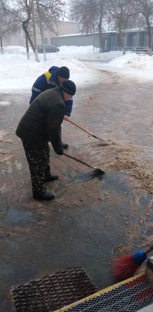 Пешеходные дорожки очищены от снега и обработаны противогололедными составами. Безопасность работников остается приоритетом профсоюзного контроля.