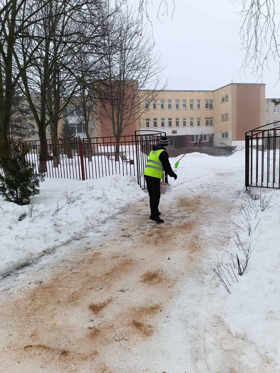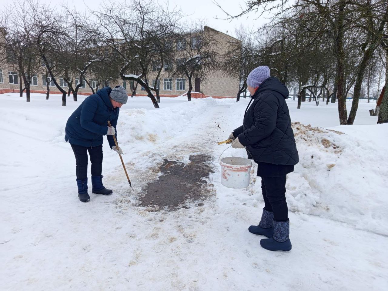 В первичных профсоюзных организациях учреждений образования и спорта Пуховичского района проведён общественный контроль состояния территории в связи с гололедицей: